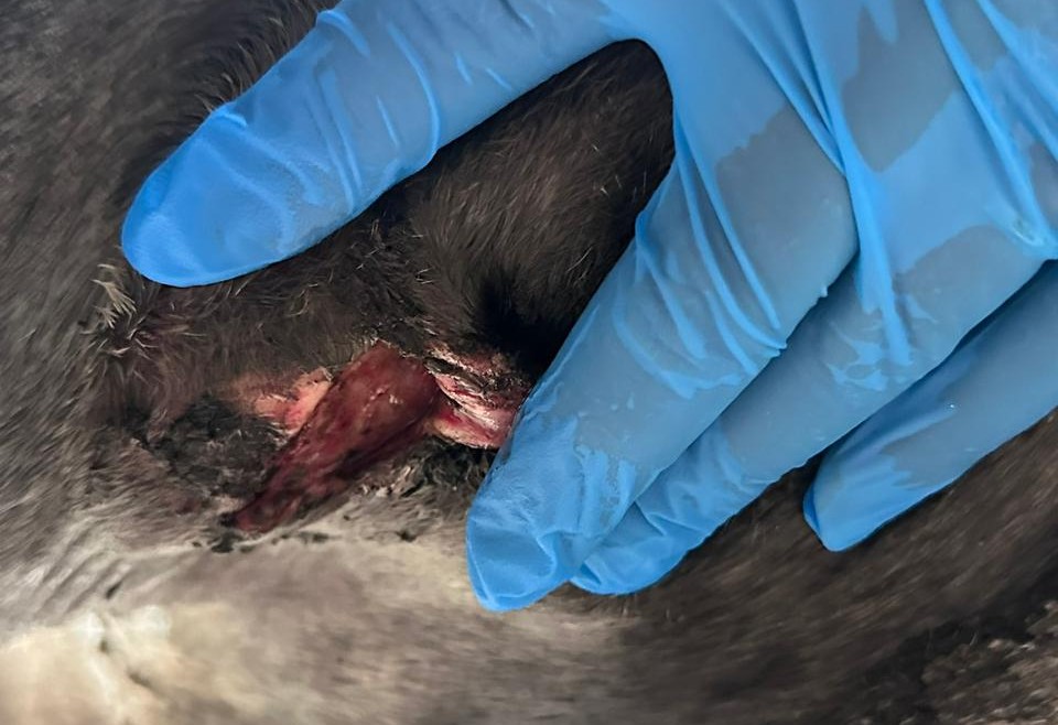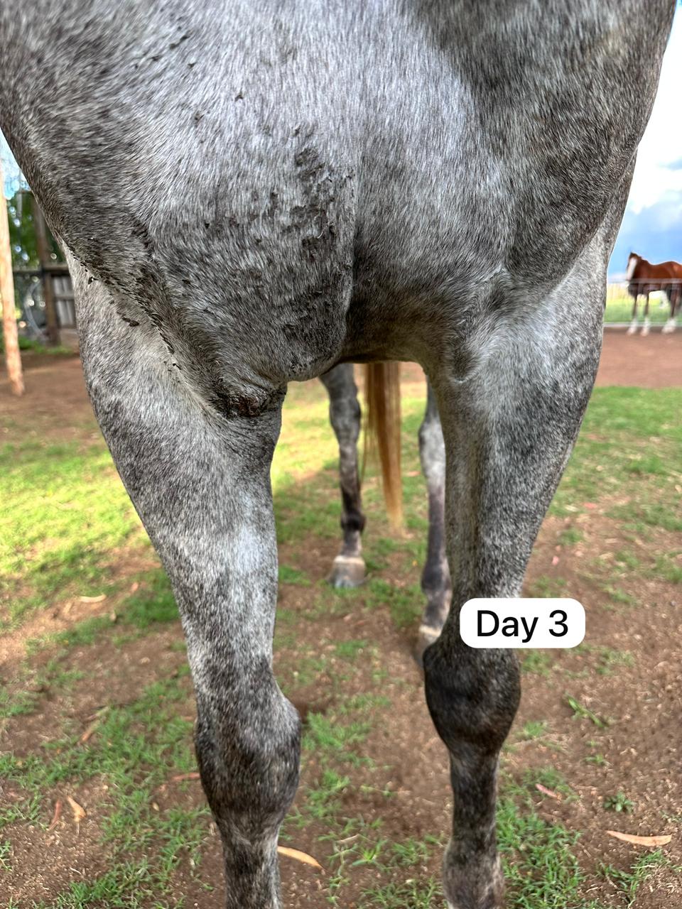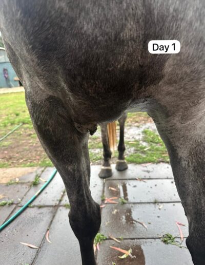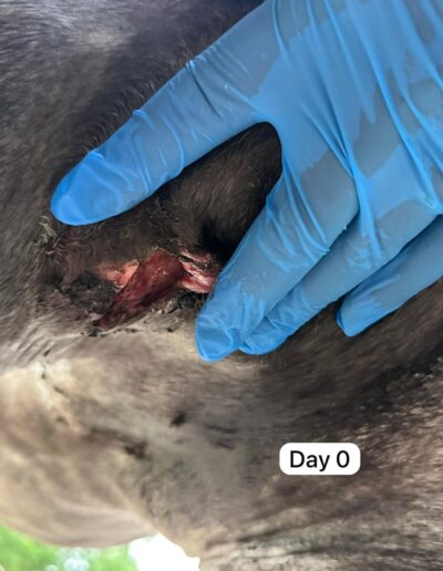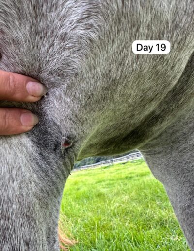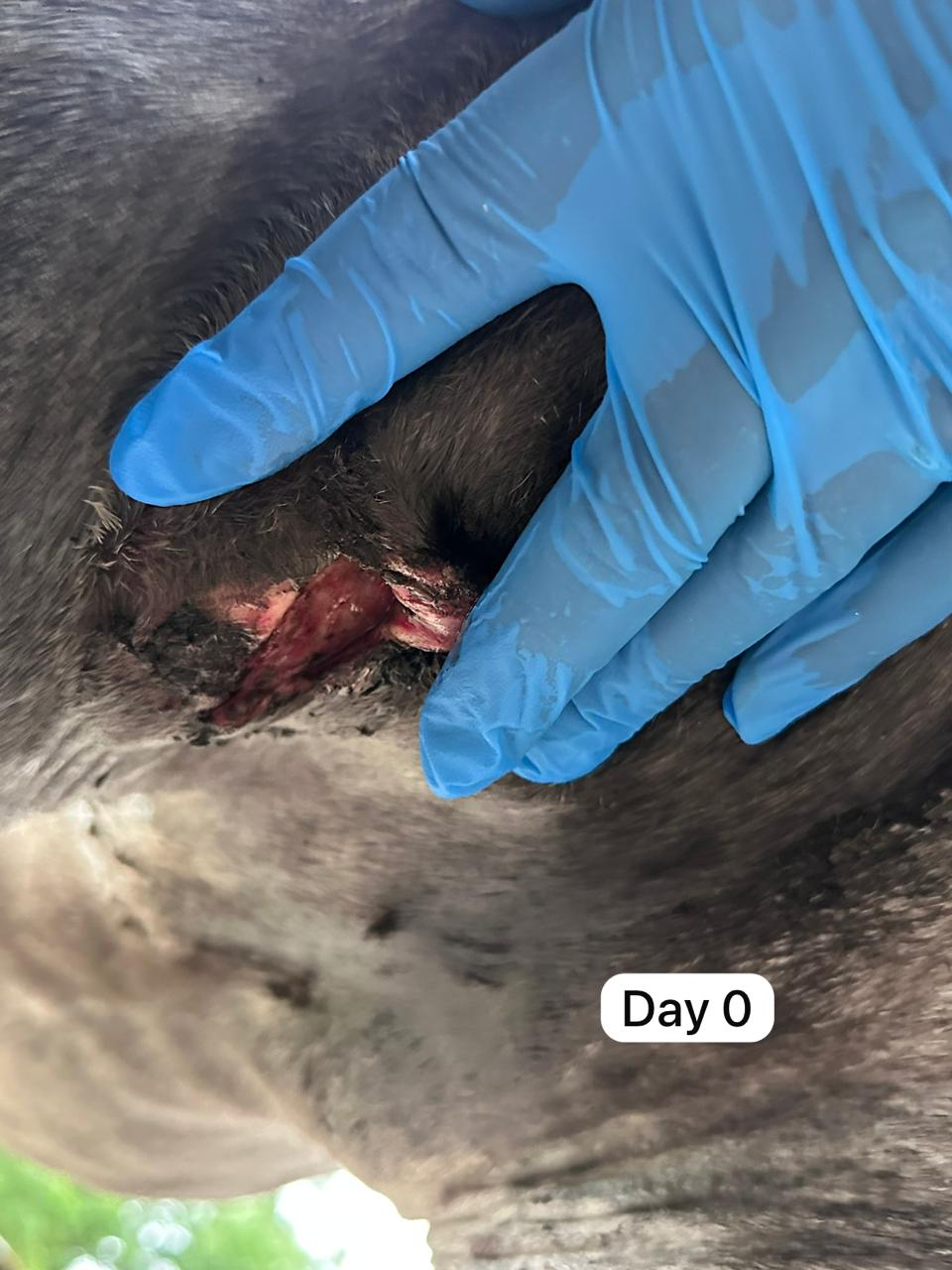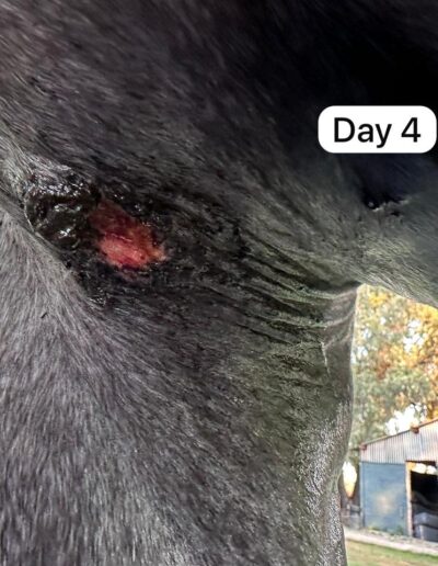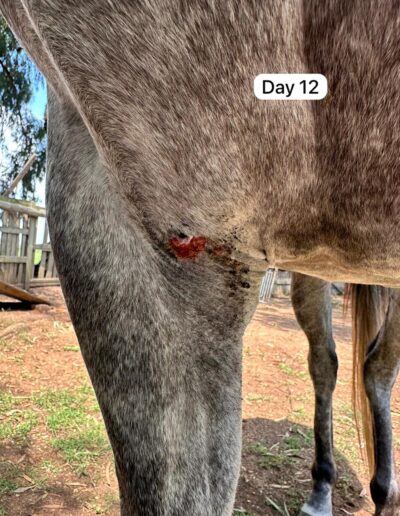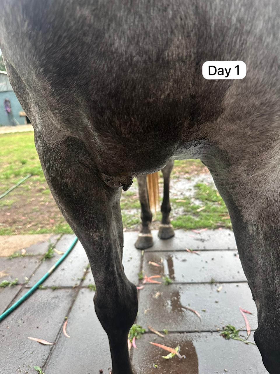 It’s called MAGIC MUD for a reason! Check this out! One of my geldings got himself impaled during the night and, yes, I stuck my finger in it to check for objects.